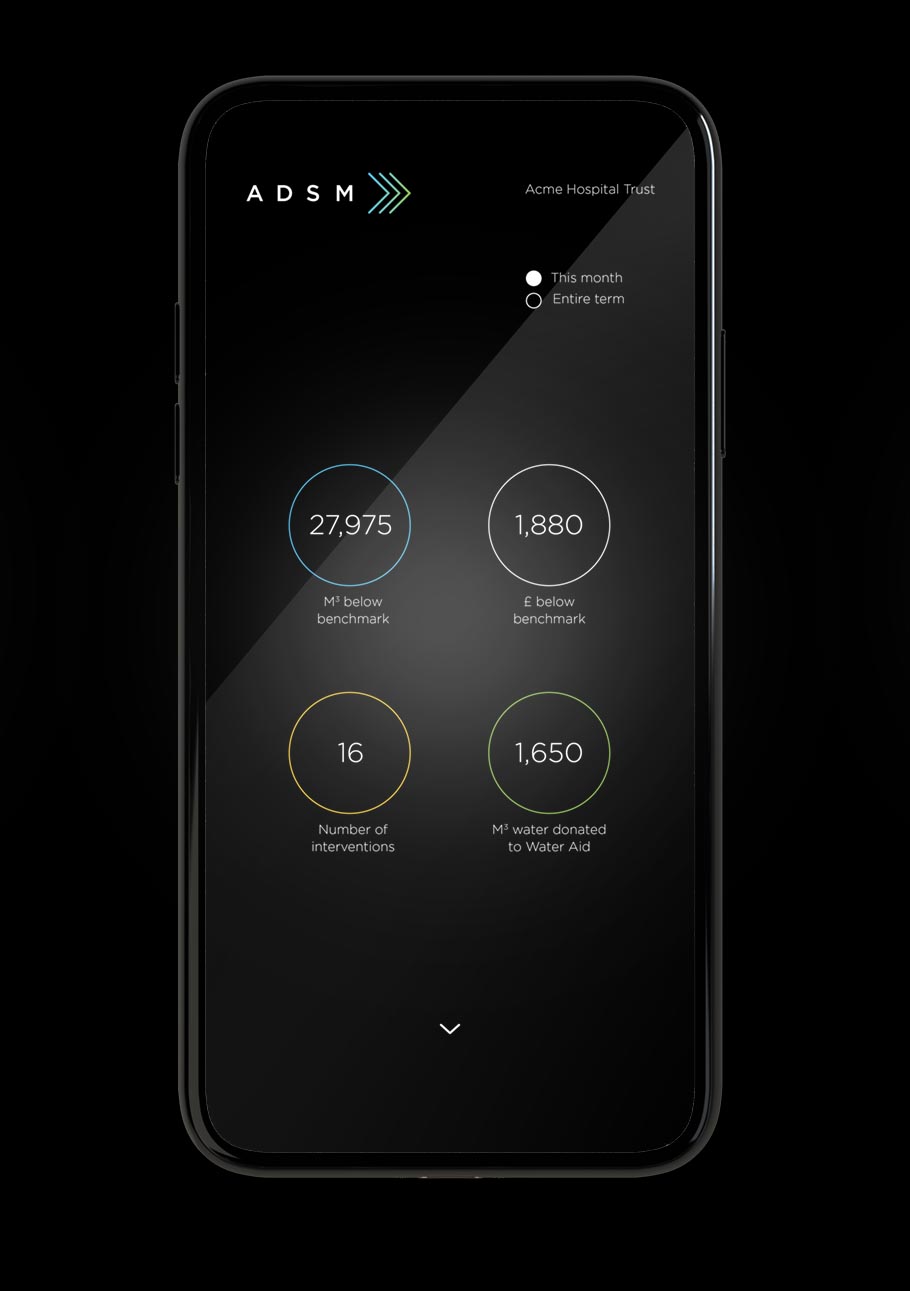 It is good to know that every drop of water you save will be visible and tangible for you and your colleagues. ADSM’s TApp™ makes it easy, with real-time data relayed back to you in user-friendly charts and tables that make everything clear. As well as showing you what you are saving, the TApp™ also highlights the site interventions that have been necessary, and even the amount of money we have donated to Water Aid on your behalf.